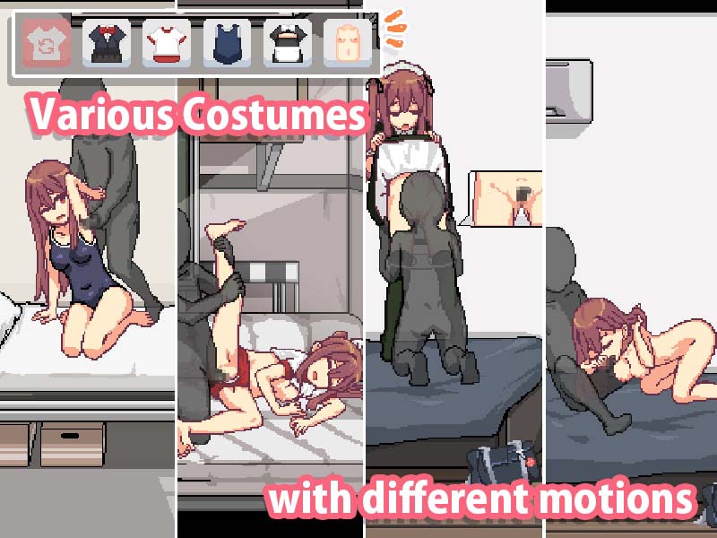 – Costumes include uniform, gym clothes, swimsuit, maid outfit, nude, and more. Each has their own motions.