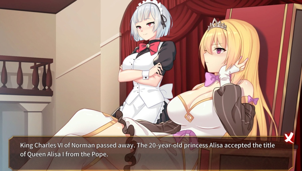 You will play the Queen (Alisa) who was granted the throne in these times of crisis. Facing the threat of the Cesten Empire and the covetous eyes of the neighboring countries, can you lead the kingdom of Norman to survival and prosperity despite the desperate situation of losing the country? Can you lead Norman to revenge against the Cesten Empire after three long, hard years?