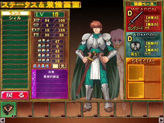 Rance is usually seen with his slave magician Sill in tow. However, in this realm of magic, the tables are turned. As a non-magician, Rance suffers from discrimination, while Sill enjoys a VIP status.
